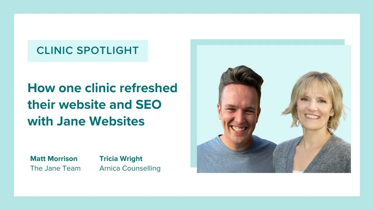 For our first session, we’re sitting down with Tricia Wright from Arnica Counselling, a counselling practice based in Prince George, BC. Tricia will share what it’s been like rethinking their website and SEO with Jane Websites, and how bringing their website and Jane together supports their clinic as they grow.